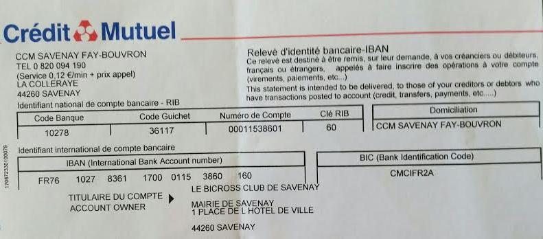 Télécharger l'image jpegRelevé Identité Bancaire du CLUB